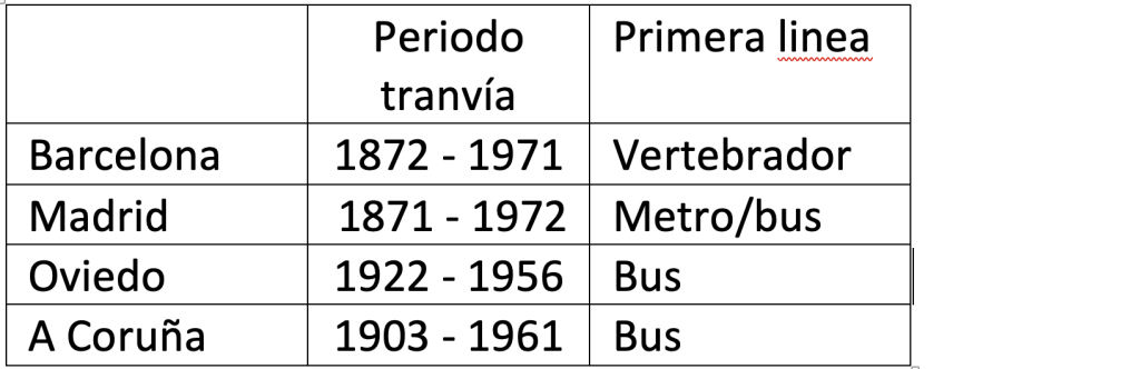 La mayoría de las redes de tranvía fueron desapareciendo en las décadas de 1960 y 1970 debido a la competencia del autobús y la creciente popularidad del automóvil. En la actualidad, varias ciudades han recuperado el tranvía como medio de transporte urbano sostenible y eficiente. El estudio se centrará en cuatro ciudades con tamaños y poblaciones muy diversas: #Madrid, #Barcelona, #ACoruña y #Oviedo.