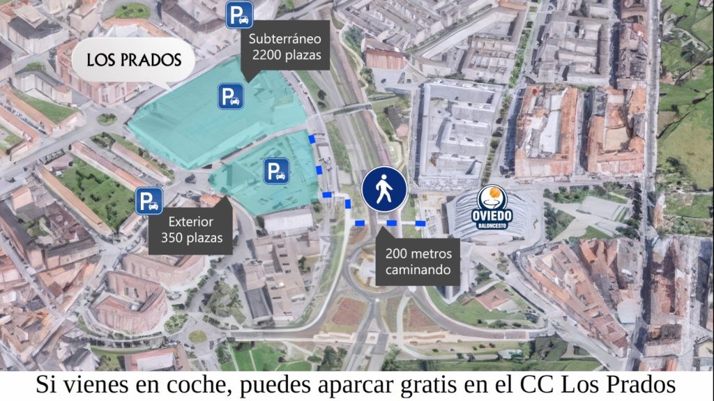 La principal recomendación fue la de acceder caminando a la instalación, aprovechando el gran número de vías peatonales que confluyen en el Palacio. También se priorizó el uso del servicio de transporte público, en este caso las líneas de autobús urbano gestionadas por TUA. Hasta tres líneas de autobús urbano tienen a disposición de los aficionados paradas próximas al destino. Por último, para quienes decidieran acercarse en sus vehículos particulares, tanto desde Oviedo como de otros puntos de dentro o fuera de Asturias, se recomendó aparcar en las más de 2.500 plazas que el Centro Comercial Los Prados pone a disposición de los aficionados del club, tanto en el parking exterior como en las dos plantas subterráneas. Se recordó también a los asistentes que utilizando el paso de peatones que da acceso directo a la plaza exterior del Palacio desde las inmediaciones del parking exterior de Los Prados, el trayecto peatonal se reduce a menos de 200 metros.